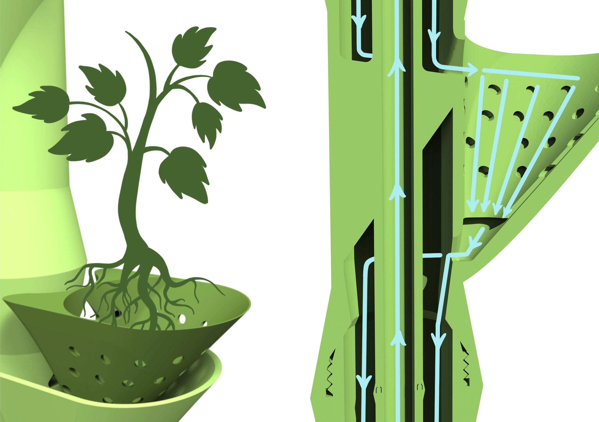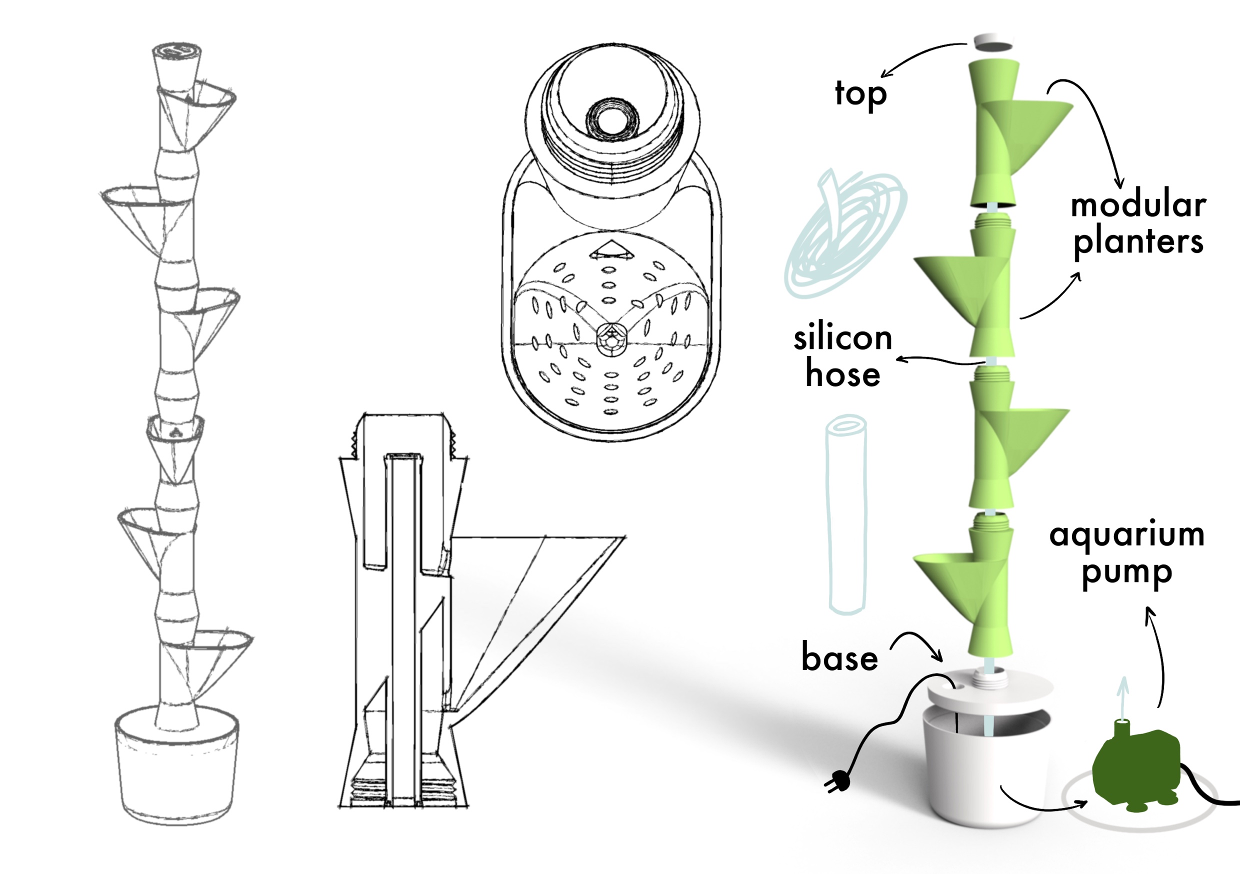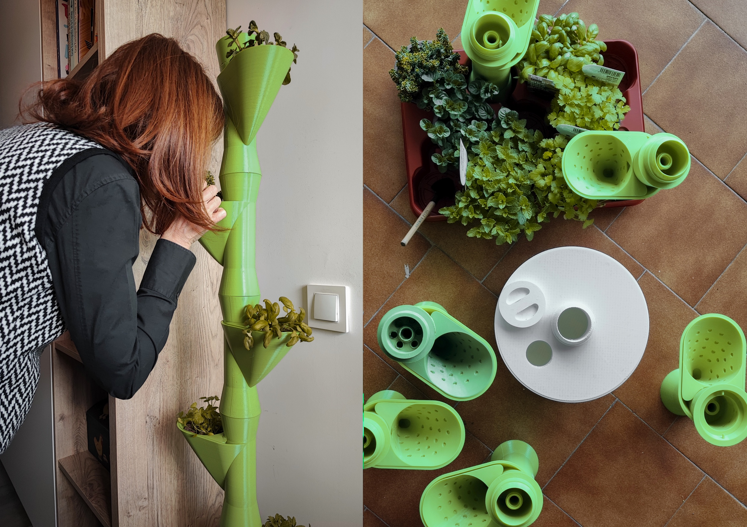 Its modular design allows you to play with its height according to the space of your home, with the combination of vegetables to grow according to your needs, and its orientation for optimal use of solar energy.